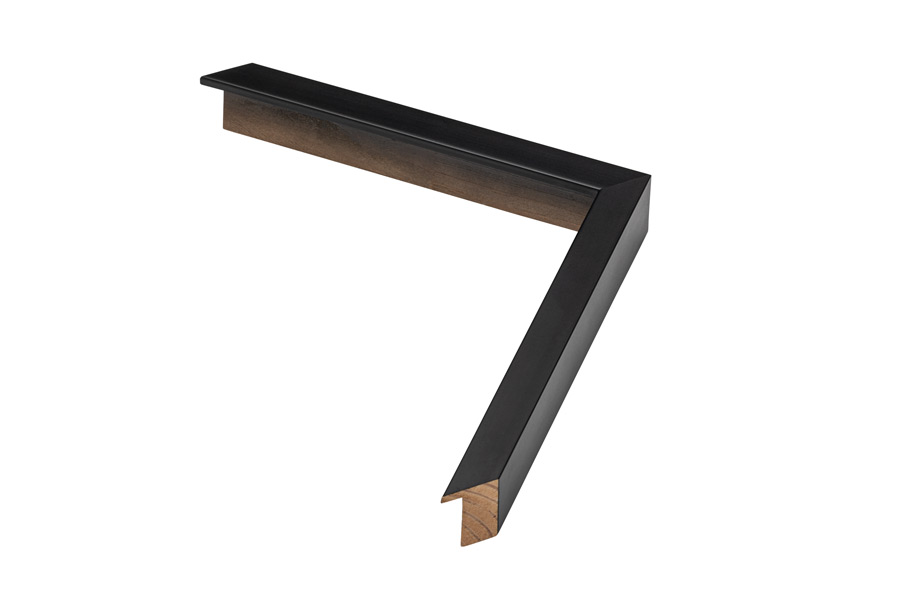 Moldura em madeira pinho, com acabamento em lacado preto fosco.