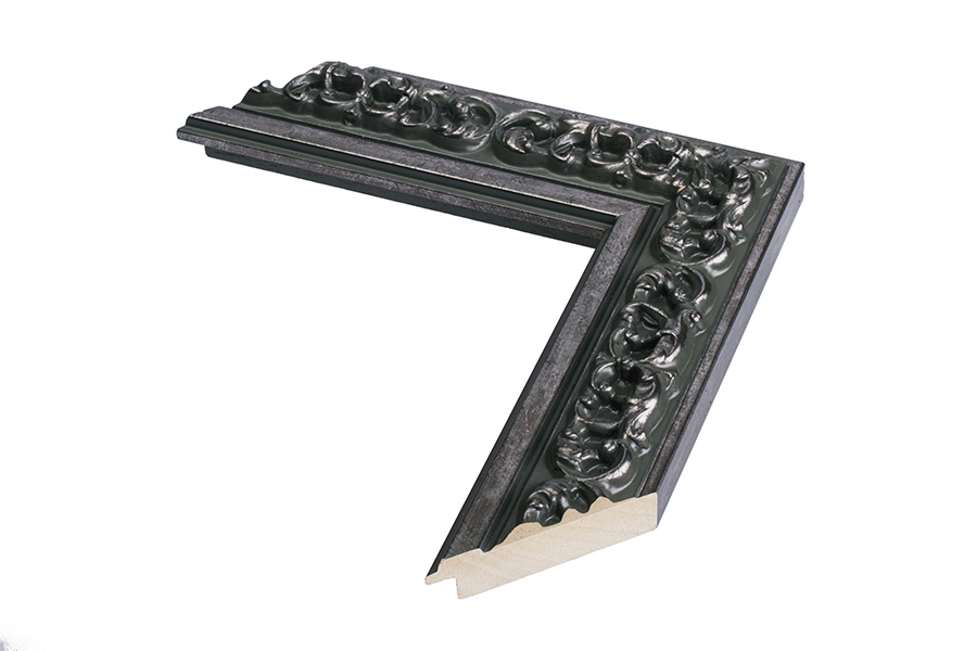 Moldura em madeira ayous, com acabamento em filme de cor prata.