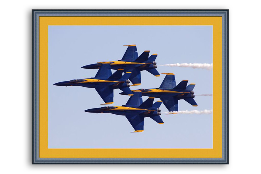 Moldura em madeira ayous, com acabamento em anilina azul.