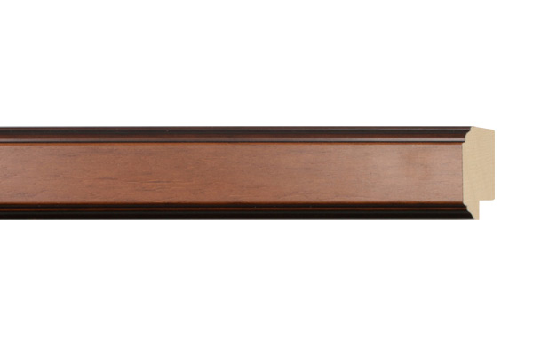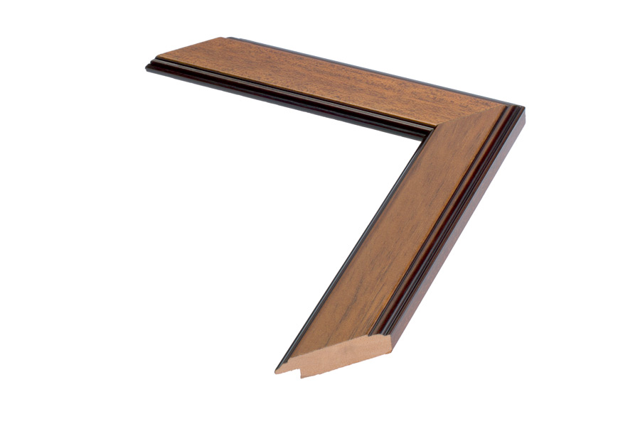 Moldura em madeira ayous, com acabamento em anilina castanha e pátina preta.