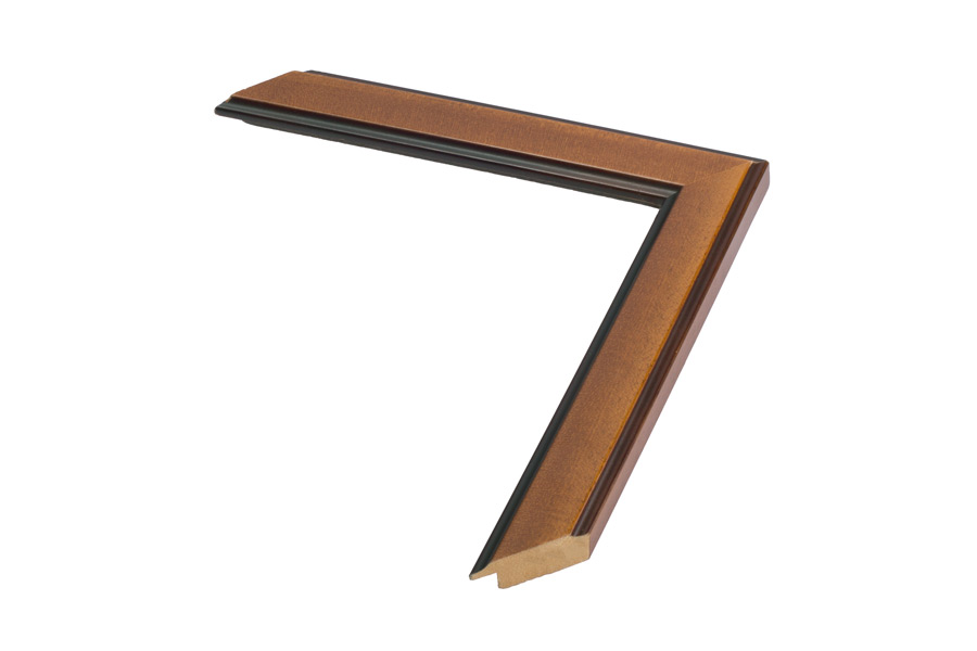 Moldura em madeira ayous, com acabamento em anilina castanha e pátina preta.