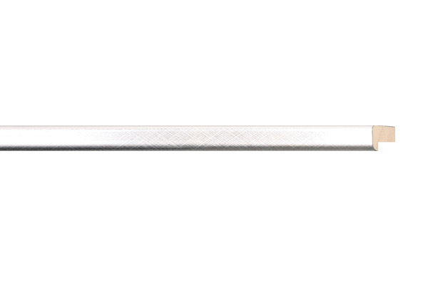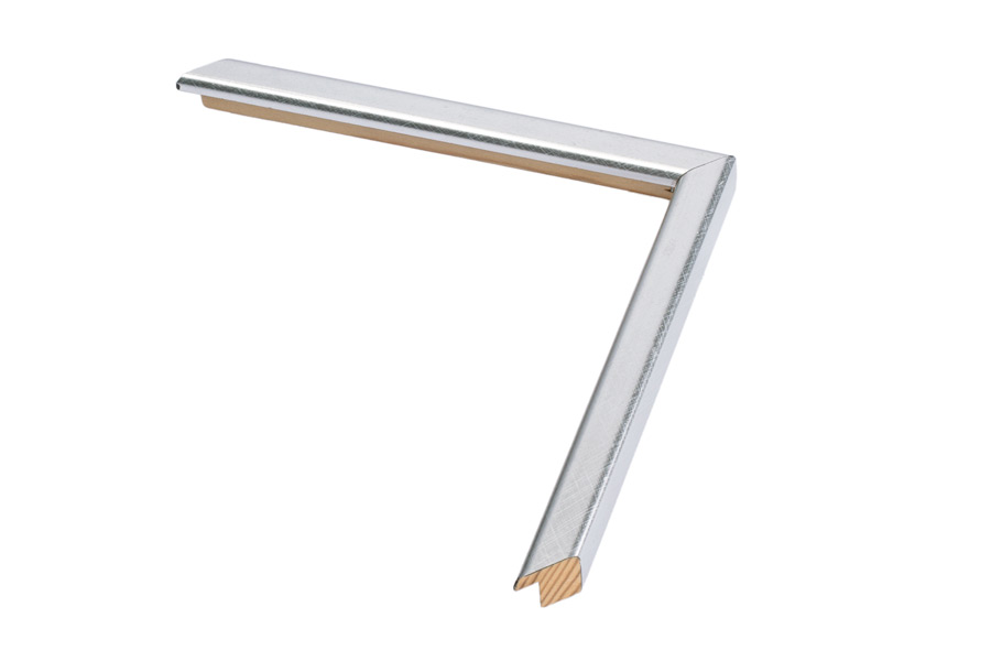 Moldura em madeira pinho juntado, com acabamento em filme de cor prata.