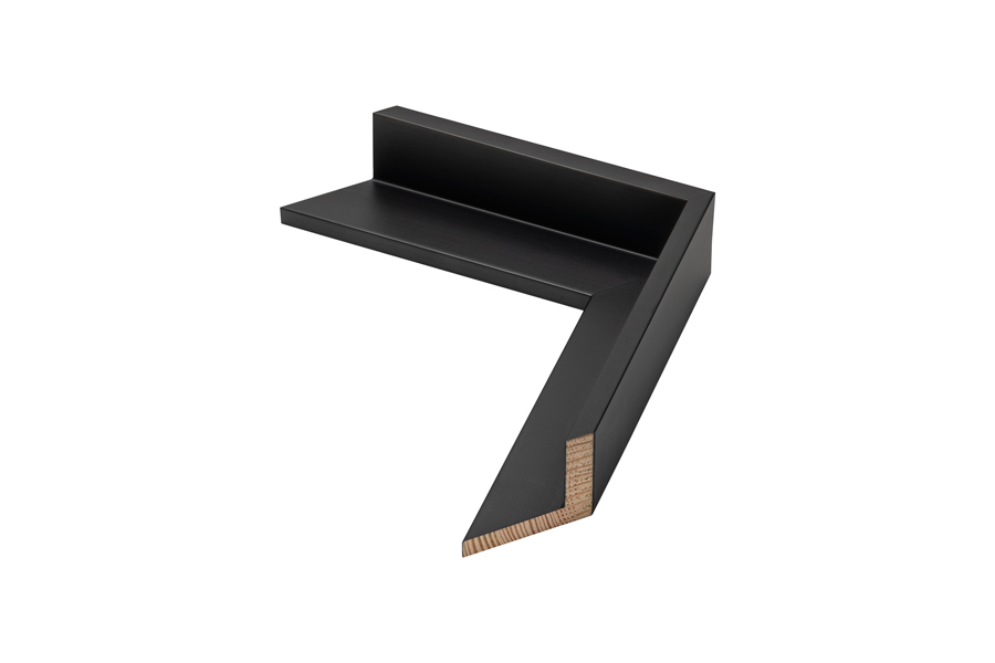 Moldura em “L” de base e face preta para pinturas ou fotos em tela esticadas em grade de 4 cm de espessura. Este tipo de molduras também são conhecidas por caixa americana.