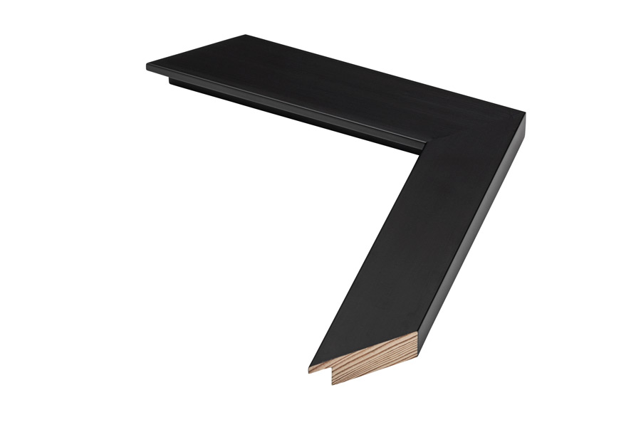 Moldura em madeira pinho, com acabamento em lacado preto.