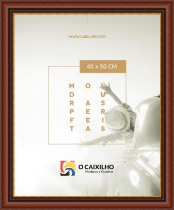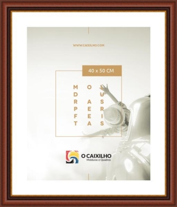 Moldura castanha com friso dourado, ideal para fotos, posters e serigrafias.