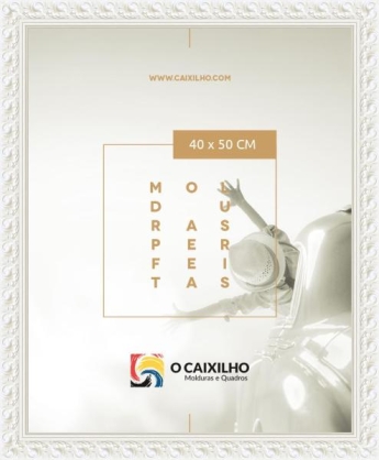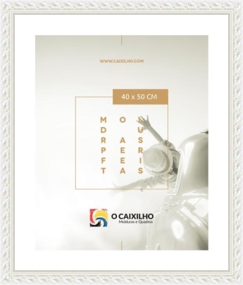 Moldura trabalhada branca, de 3.5 cm de largura, ideal para fotos, posters, pinturas e quadros nos tamanhos mais populares.